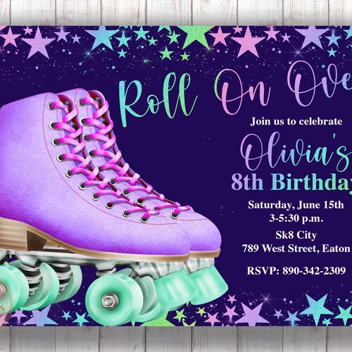 Roller Skate Birthday Party Invitation Skating Roller Etsy