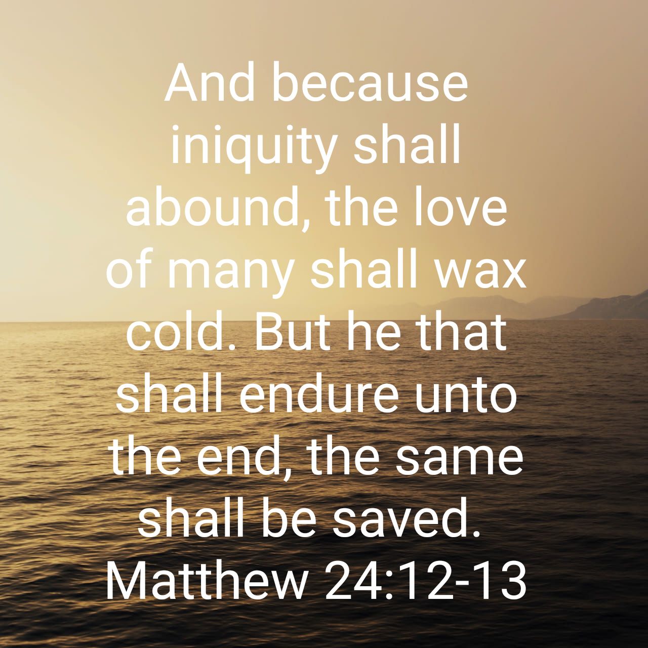 Leon On Twitter And Because Iniquity Shall Abound The Love Of Many Shall Wax Cold But He That Shall Endure Unto The End The Same Shall Be Saved Matthew 24 12 13 Kjv Https T Co 8fficcdacf